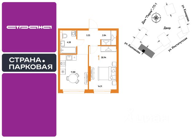 Продаётся 1-комнатная квартира площадью 47.7 м² на 4 этаже в Жилом Комплексе "Союз".