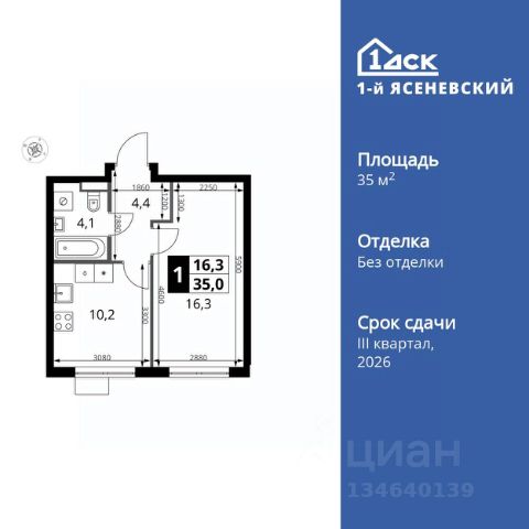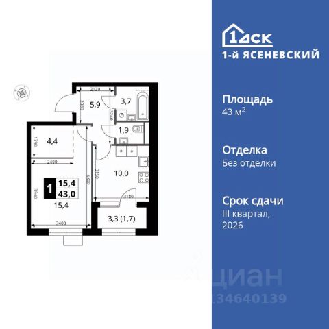 Прямая продажа от застройщика! Жилой Комплекс класса Комфорт Плюс. Продаётся 1-к квартира номер 151 общей площадью 41.1 кв.м. на 4-м этаже 18 этажного здания. Без отделки. Особенности квартиры: - Квартиры рядом с метро - м. Корниловская 9 мин пешком - 63 га лесопарка за окнами - Школа c it-кластером и бассейном. 2 детских сада - Линейная планировка - максимальная функциональность и удобство. - Просторная ванная - место для расслабления и уединения. - Гибкая планировка - создайте пространство по своему вкусу. - Линейная кухня - функциональность и практичность в одном решении. - Просторная гардеробная - место для вашего личного пространства. - Лоджия - уютное место для отдыха и тишины. Информация о комплексе: В жилом комплексе комфорт-плюс класса "1-го Ясеневского" доступны преимущества двух стилей жизни. Ведь в пешей доступности метро, школа с 25-метровым бассейном и IT-кластером и при этом целых 63 га благоустроенного Троицкого лесопарка под окнами, где так приятно дышать свежим воздухом и слушать пение птиц. Собственная закрытая территория "1-го Ясеневского" представляет собой уютный оазис. Здесь и зеленый освещенный бульвар для прогулок, система велодорожек, маленькая городская площадь, кафе, пекарни и кофе поинты. А еще дворы без машин и многоэтажная парковка. Изюминка территории - фруктовые деревья во дворах и городские сады. "1-й Ясеневский" - всего в 1 км от МКАД, на территории новой Москвы. Жилой комплекс, где есть все необходимое для современного человека. Транспортная доступность: До метро "Корниловская" - 12 минут пешком До метро "Тютчевская" - 25 минут пешком До метро "Теплый стан" - 10 минут на транспорте До метро "Ольховая" - 30 минут на общественном транспорте Личный автотранспорт: Выезд на Калужское шоссе - 500 м МКАД - 1 км Внутренняя инфраструктура: ЖК "1-й Ясеневский" можно назвать идеальным местом для жизни семьи с детьми. Здесь буквально за домом находится Троицкий лесопарк - излюбленное место прогулок молодых родителей. А во внутренних дворах под детские площадки выделены специальные зоны. Они оборудованы всем, что нужно для счастливого детства: современными и максимально безопасными качелями, песочницами и лазалками. Оборудование и игровые сценарии на детских площадках спроектированы вместе с командой детских психологов для правильного развития ребенка и для повышения их интереса. Также рядом с домом два детских садика, один из которых уже построен и школа на 1100 мест. Школу по праву можно назвать образцовым учебным заведением. В ней закладываются основы успешного будущего. Здесь есть класс робототехники, IT-кластер, 25-метровый бассейн и прекрасно оборудованные спортзалы.