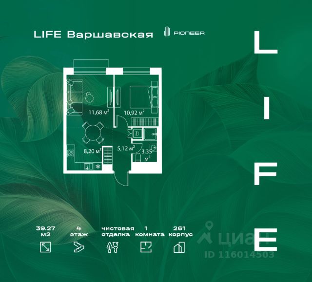 В районе Москворечье-Сабурово продается 1-комнатная квартира площадью 42.8 м². Она расположена на 4 этаже в 261 корпусе нового жилого квартала LIFE Варшавская. Площадь комнат: гостиная — 12,57 м² спальня — 12,41 м² кухня — 6,51 м² ванная — 4,85 м² В LIFE Варшавская мы создали идеальные условия для жизни молодых людей и семей с детьми, тинейджеров и спортсменов, домохозяек и бизнесменов. Жилой квартал LIFE Варшавская удачно расположен: 5 минут до станции "Варшавская" 10 минут до станции "Каширская" 18-25 минут до парка-усадьбы "Коломенское", Битцевского леса и музея-заповедника "Царицыно" Богатая инфраструктура — это визитная карточка проекта. На территории работают детский сад на 160 мест и школа на 900 мест с IT-полигоном и мультифункциональным спортивным стадионом. В квартале разместились пешеходный бульвар, игровой плейхаб "Змейка", спортивный кластер с полями для футбола и волейбола, площадка для выгула животных. На первых этажах жилых домов открыты магазины, кафе и рестораны, салоны красоты, арт-галереи, сервисы бытовых услуг, медицинские центры. Концепция жилого квартала создана ведущими архитектурными бюро. Структуры малоэтажных кварталов дополняются высотными башнями-доминантами. Такой тип застройки позволил сформировать освещенную приватную территорию.