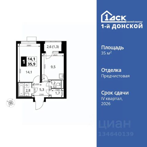 Продаётся 1-комнатная квартира в строящемся доме (Корпус 26), срок сдачи: II-кв. 2026, общей площадью 38.7 кв.м., на 4 этаже. Расположение, транспортная доступность
