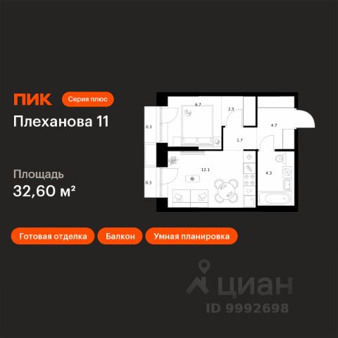Продаётся 1-комн. квартира площадью 32,6 кв.м на 4 этаже 24 этажного дома (Корпус 1.1, Секция 1) проекта ПИК Плеханова 11. Светлый просторный подъезд на уровне земли, функциональная планировка, большие окна, c отделкой. "Плеханова 11" - квартал из пяти корпусов с уникальной архитектурой в тихом спальном районе Перово на востоке Москвы - в 10 минутах пешком от станции метро "Шоссе Энтузиастов". Проект будет располагаться на пересечении улицы Плеханова и 2-го проезда Перова Поля. Здесь можно купить квартиру с отделкой, окнами в пол, балконами на выбор и умной планировкой. На территории квартала появится масштабное мультифункциональное общественное пространство для жителей. Проект возводится посреди живописных парков. Всего за 10 минут можно дойти до Измайловского парка: здесь есть и старинные пруды, и аттракционы, и архитектурные памятники XVIII века. На таком же расстоянии небольшой уютный парк у Владимирского пруда - кстати, через него лежит дорога к метро "Шоссе Энтузиастов". В 15 минутах пешком - Перовский парк. В десяти минутах на автомобиле - музей-заповедник Кусково и Терлецкий лесопарк. В "Плеханова 11" комфортно жить и с машиной, и без неё. Рядом станция метро "Шоссе Энтузиастов" - до неё 10 минут пешком. До станции МЦК "Шоссе Энтузиастов" - 15 минут пешком, а до метро "Перово" - 20 минут. К проекту примыкает автобусная остановка, от которой можно доехать до станций МЦД "Перово", "Новогиреево" и метро "Черкизовская". Автомобилистам удобно выезжать из проекта на шоссе Энтузиастов - до него всего две минуты на машине. Ехать до СВХ и ЮВХ - 5 минут, до МКАД - 13 минут, до ТТК - 7 минут. В продаже квартиры с умными, комфортными и адаптивными планировками, в которых продуман каждый метр. Такое пространство легко настроить под себя, чтобы получить максимум пользы независимо от площади. Артикул 902744 (Застройщик ООО "СЗ ЯСЕНЕВЫЙ ПАРК")