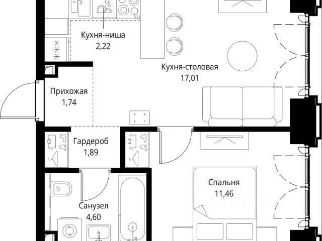 Продаётся 1-комнатная квартира 45 м². В жилом районе ALIA на 4-м этаже 28-этажного дома. Жилой район ALIA — это дома бизнес-класса у слияния Москвы-реки и Сходни. ALIA находится в Покровском-Стрешневе, экологически чистом районе на престижном северо-западе столицы. Район возводится на бывшей территории Тушинского аэрополя, где никогда не было промышленного производства. ALIA — это район разностороннего развития, спроектированный по принципу WORK.LIVE.PLAY.LEARN. Это "15-минутный город", где вся необходимая для комфортной жизни инфраструктура — на расстоянии приятной прогулки. У района удобное расположение: отсюда меньше 10 минут пешком до станций метро "Спартак" и "Тушинская" и всего полчаса на автомобиле до центра города или аэропорта Шереметьево. Архитектурную концепцию ALIA разработало бюро SOM (Skidmore, Owings & Merrill), авторы знаменитой "Бурдж-Халифа". В ALIA больше 140 планировочных решений, среди которых — редкие для Москвы форматы: квартиры с окном в ванной, пентхаус, сити-юниты и таунхаусы. Почти половина территории района отдана под благоустройство. В ALIA три парка: Линейный парк с кафе и магазинами, Центральный парк с амфитеатром, сухим фонтаном и большим плейхабом для детей всех возрастов и Прибрежный парк на собственной набережной, одной из самых длинных в Москве. В каждом урбан-блоке — закрытый внутренний двор с гипоаллергенными растениями и детской площадкой. В лобби каждого жилого корпуса в ALIA оборудована зона ожидания, колясочная, гостевой санузел и лапомойка для домашних животных. За стойкой ресепшена резидентов и их гостей встречает консьерж. Центральное лобби урбан-блока — это стильное общественное пространство с коворкингом, лаундж-зоной и кофе-пойнтом. Это "вторая гостиная" жителей урбан-блока и одно из мест, где формируется комьюнити ALIA. Два ключевых объекта инфраструктуры в ALIA — это спорткомплекс "Чкалов Арена", где представлены 25 видов спорта, и самый большой в стране бизнес-парк класса A, благодаря которому району обеспечено быстрое развитие.