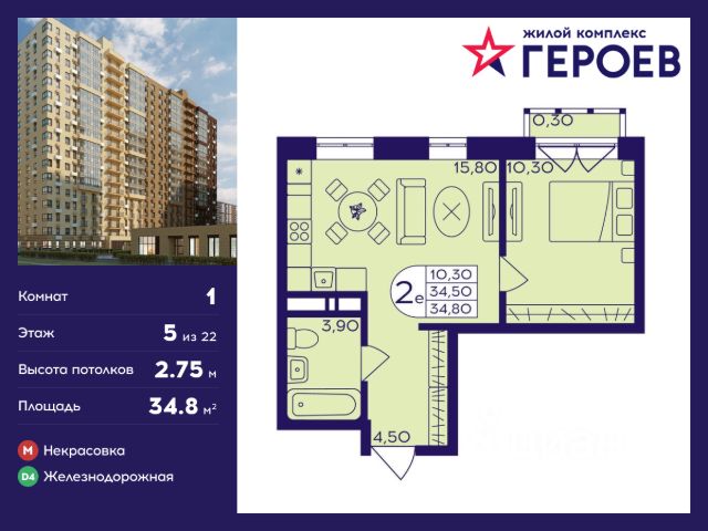 Продаётся 1-комнатная квартира 36.00 кв. м. в жилом комплексе "Героев" в Балашихе, Железнодорожный. Квартира расположена на 5 этаже 410 корпуса. В наличии квартиры с отделкой. Всего 40 минут до центра Москвы. При покупке квартиры в сданном доме ключи выдаются сразу! Жилой квартал "Героев" - это уютный проект для семей с детьми. В квартале созданы все условия для досуга всех возрастов: игровые и спортивные площадки, места для отдыха и прогулочные зоны. За 15 минут можно дойти от дома до Ольгинского лесопарка, популярного места для отдыха на свежем воздухе. На территории жилого комплекса уже открыт детский сад на 250 мест и началось строительство еще одного - для 220 малышей, а также школы для 1320 учеников. Рядом работают магазины, кафе, супермаркеты, пункты выдачи. Преимущества: • В уютных светлых квартирах с просторными кухнями-гостиными удобно встречать гостей и проводить время наедине друг с другом. • Благодаря увеличенному остеклению в комнатах много света. • Квартиры продаются с отделкой, можно заселяться сразу после получения ключей.