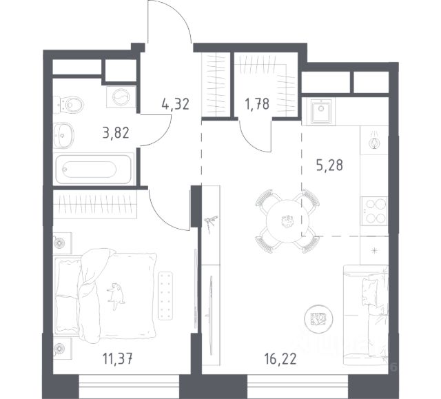 Продаётся 1-комнатная квартира 1010, площадью 37,24 м², на 5 этаже в ЖК "Пехра" корпус 8. Стоимость — от 7393976 руб. Квартира без отделки, планировка односторонняя, окна во двор.