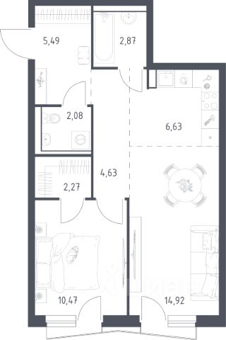 Продаётся 1-комнатная квартира 861, площадью 33,89 м², на 5 этаже в ЖК "Пехра" корпус 1. Стоимость — от 8227512 руб. Квартира без отделки, планировка односторонняя, окна на улицу.