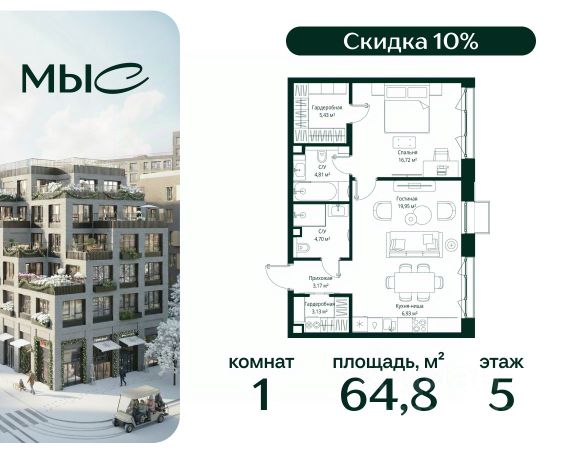 Прямая продажа от застройщика. Продаётся 1-комнатная квартира общей площадью 37.63 м² без отделки в премиальном жилом комплексе "МЫС" на 5-м этаже 12 этажного дома. Квартира расположена в корпусе "Сибирь". Проект МЫС — это, прежде всего, идеальное место для семей. В рамках проекта построят государственную школу, два детских сада и дворец спорта площадью 20 000 м2 с термальным комплексом, выплывным бассейном, фитнес-залом, теннисными, сквош и падел кортами и секциями для детей. На территории площадью, сравнимой с тремя парками Зарядье, появятся кафе и рестораны, пруд с набережной, спортивные и детские площадки, скейт-парк, лыжные и веломаршруты. Расположение: - 2 минуты до скоростной трассы М1 и Минского шоссе; - 10 минут до МКАД; - 15 минут до МЦД Лесной Городок - 20 минут до делового центра "Москва-Сити"; - 28 минут до аэропорта "Внуково". Благоустройство: - велосипедные и лыжные маршруты; - собственная набережная и парк; - лаунж-зоны в окружении природы; - беседки у очага; - дворец спорта площадью 20 000 м²; - термальный комплекс с тремя бассейнами; - 4 теннисных и падел-корта; - 6 сквош-кортов; - многофункциональный спортзал; - скейт-парк; - просторная площадь для прогулок с фонтаном; - детский клуб с творческими секциями; - гастро-доминанта; - кафе у пруда, рестораны, ритейл. Окружение - соседство с лесным фондом; - школа на 1250 мест и 2 детских сада на 350 и 255 мест; - Дубковский и Подушкинский леса, парк "Рассказовка", Мещерский парк.Действуют специальные условия при 100% оплате, подробности уточняйте у менеджера в офисе продаж. Купить 1-комнатную квартиру на 5 этаже в Московской области.