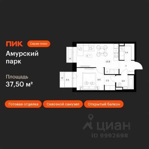 Продаётся 1-комн. квартира площадью 36 кв.м на 5 этаже 27 этажного дома (Корпус 4.5, Секция 6) проекта ПИК Амурский парк. Светлый просторный подъезд на уровне земли, функциональная планировка, большие окна, c отделкой. "Амурский парк" — проект "Серии плюс" на востоке Москвы, в 10 минутах пешком от станций метро "Черкизовская" и МЦК "Локомотив". В квартале будет всё для комфортной жизни: квартиры с готовой отделкой и видом на Измайловский парк, уютные дизайнерские лобби, подземный паркинг, торговые галереи на первых этажах и свой детский сад с бассейном. Всего в 8 минутах пешком от квартала "Амурский парк" находится уютный Сиреневый сад, а в 20 минутах — Детский Черкизовский Парк, за 10 минут можно доехать на машине до парка "Лосиный Остров". Квартал от мастерской M.A.M. отражает уникальный архитектурный почерк и органично дополняет городской ландшафт. В основе концепции — принцип сомасштабности человеку, благодаря чему внутри проекта формируется комфортное и гармоничное пространство для жизни. Квартал представлен разновысотными корпусами в минималистичном стиле. Образ строится на сочетании мягких пластичных линий и строгих геометрических форм. Рельефные детали в виде вертикальных металлических ламелей добавляют зданиям объём и глубину, делая архитектуру более выразительной. Цветовая гамма фасадов построена на контрасте терракотового и молочно-серого оттенков, которые создают атмосферу тепла и уюта. Магазины, рестораны и полезные сервисы на первых этажах создадут комфортное пространство для покупок, прогулок и встреч за чашкой кофе. Артикул 1020941 (Застройщик АО "СПЕЦИАЛИЗИРОВАННЫЙ ЗАСТРОЙЩИК "ГЛОРИ"")