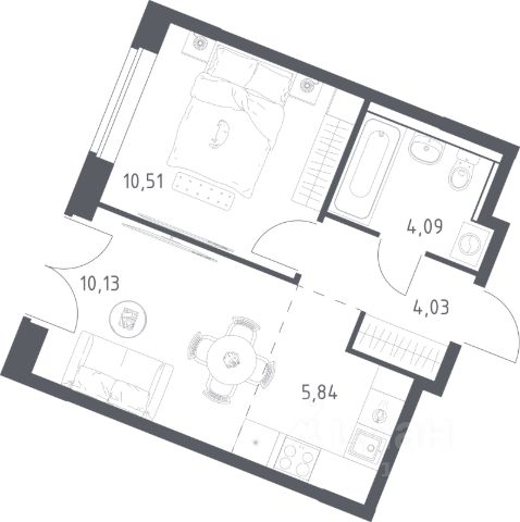 В продаже 1-комнатная квартира в корпусе 9 ЖК 'Квартал Западный'. Квартира располагается на 5 этаже, общая площадь 43.03 м2.