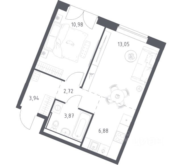 В продаже 1-комнатная квартира в корпусе 9 ЖК 'Квартал Западный'. Квартира располагается на 5 этаже, общая площадь 43.95 м2.