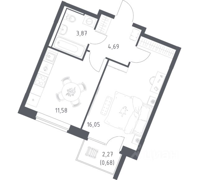 В продаже 1-комнатная квартира в корпусе 9 ЖК 'Квартал Западный'. Квартира располагается на 5 этаже, общая площадь 32.68 м2.