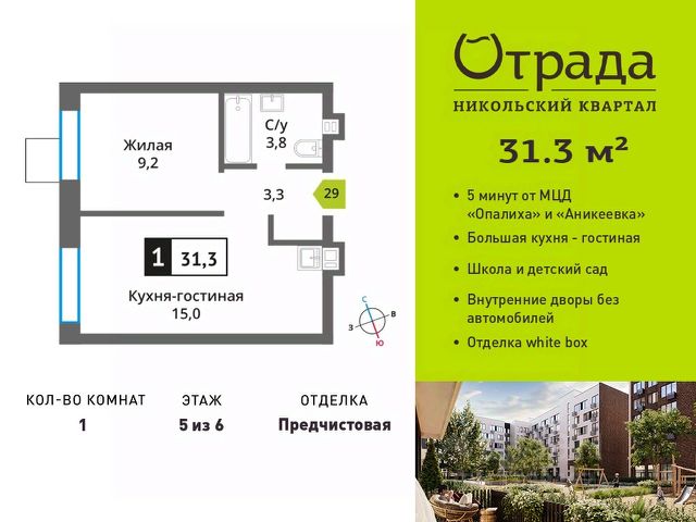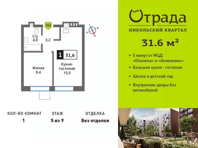 Беспроцентная рассрочка от застройщика. В продаже 1-комнатная квартира квартира площадью 41.8 м², расположенная на 5 этаже в жилом квартале "Станиславский" — проекте бизнес-класса на Новорижском шоссе, всего в 10 минутах от Москвы. В квартире 171 Дом 1 (Корпус 1.1, секция 5) высота потолков — от 3 метров, просторная планировка с гардеробной и большой кухней-гостиной создают комфорт и свободу для воплощения ваших идей. В проекте есть разнообразные отделочные решения, что позволяет реализовать любые дизайнерские предпочтения и планировочные идеи. В "Станиславском" представлены квартиры на любой вкус и для любой семьи: студии, классические и европланировки, а также крупные 4- и 5-комнатные варианты. Все помещения предлагаются без отделки, что дает свободу для создания уникального пространства. Обустроенная территория предусматривает функциональное зонирование: зеленые бульвары, природные тропы, интерактивные зоны, центральная площадь с подиумом для мероприятий и спортивный кластер. Для жителей предусмотрены разнообразные сценарии досуга: тихие зоны для общения, массажные тропы и сад ароматных трав для оздоровления, всесезонные уличные игры и открытые поляны для спортивных и настольных развлечений. Также есть познавательная зона с огородом, скворечниками и микроскопами. В концепции ЖК "Станиславский" особое внимание уделено въездной зоне: здесь создана комфортная площадка для встреч с гостями, обрамленная живой изгородью. Отсюда также открывается доступ к специально оборудованной территории для выгула питомцев — всё продумано для удобства и уюта жителей.