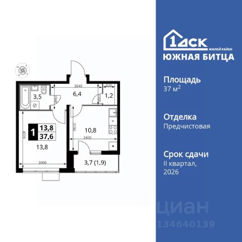 Прямая продажа от застройщика! Семейный жилой район класса Комфорт Плюс Продаётся 1-к квартира номер 655 общей площадью 37.9 кв.м. на 5-м этаже 22 этажного здания. Отделка Whitebox. Особенности квартиры: - Линейная планировка - максимальная функциональность и удобство. - Просторная кухня - место для семейных ужинов и кулинарных экспериментов. - Гардеробная - удобство для хранения и организации вещей. - Лоджия - уютное место для отдыха и тишины. Квартира с предчистовой отделкой (White box). Вам не придется заниматься черновыми и трудоёмкими работы, а чистовую отделку и дизайн - сделайте на свой вкус. Информация о комплексе: Сочетание свободного перемещения по внутреннней территории без машин и ощущения абсолютной безопасности благодаря надежным ограждениям - вот что отличает ЖК Южная Битца. На территории комплекса созданы все условия как для активного образа жизни, так и для спокойного времяпрепровождения. Свободно перемещайтесь по внутренней территории в безбарьерной среде! Продуманное зонирование во дворах позволяет отделить тихие зоны для родителей со спящими младенцами и тех, кто хочет почитать на свежем воздухе, от шумных игровых зон. Игровые зоны учитывают возраст детей. Площадки для детей старшего возраста вынесены за пределы дворов. Ощущение уютного дома должно начинаться с подъезда. Мы постарались предусмотреть все нюансы, чтобы наши лифты отвечали самым строгим современным требованиям. А наличие кладовых позволит вам поддерживать идеальный порядок и уют в вашей квартире! Транспортная доступность: В 3 км от МКАД в нескольких минутах езды до трех станций метро: Аннино, Бульвар Дмитрия Донского, улица Старокочаловская и станции МЦД2 - жд Бутово. Внутренняя инфраструктура: Для жителей жилого района "Южная Битца" доступна развитая инфраструктура близлежащих московских районов Чертаново, Южное, Бирюлёво Западное, Северное Бутово и Южное Бутово. Множество образовательных учреждений, объекты здравоохранения, торговые и развлекательные центры, кинотеатры, кафе, рестораны, парки.