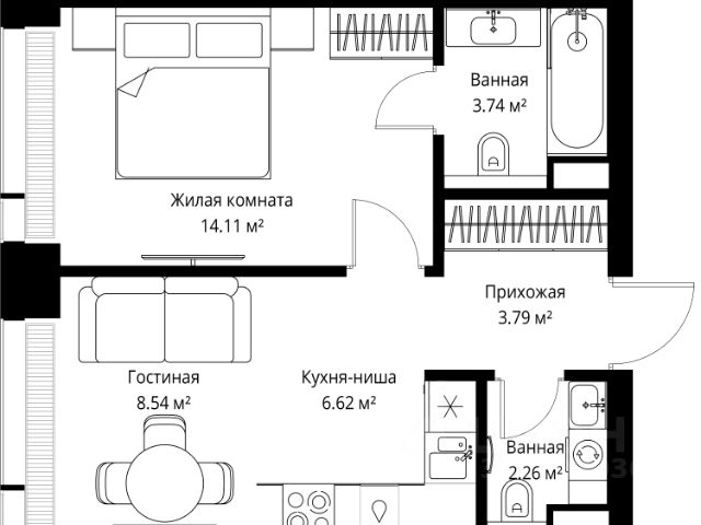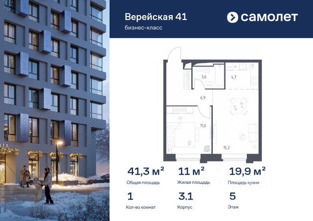 Продаётся светлая однокомнатная квартира площадью 43,4 м² в башне "Созидание" клубного дома "Кутузов Сити". Планировка квартиры продумана до мелочей и позволяет создать комфортное пространство для жизни. Просторная кухня-столовая с панорамными окнами объединяет обеденную зону, кухню и гостиную. Изолированная спальня обеспечивает уединённое пространство для отдыха. Для хранения вещей в спальне есть отдельная гардеробная, а также ниша в прихожей. Просторная ванная комната позволяет разместить как душевую кабину, так и большую ванную. Большие окна наполняют квартиру естественным светом и делают интерьер стильным. Высокие потолки придают пространству ощущение свободы и лёгкости. Продуманная планировка позволяет эффективно использовать каждый квадратный метр. О проекте: "Кутузов Сити" — клубный дом на 220 квартир, разработанный совместно с бюро Atrium и Oleg Klodt Architecture & Design. Проект строится в престижном Западном административном округе Москвы, всего в нескольких минутах ходьбы от Кутузовского проспекта. Закрытая территория, приватный двор, подземный паркинг и стильные лобби создают атмосферу комфорта и безопасности. В двух шагах от дома находится одна из крупнейших природных территорий Москвы — природный заказник "Долина реки Сетунь". Камерная застройка и развитая инфраструктура делают "Кутузов Сити" отличным выбором для тех, кто ценит качество жизни и близость к природе. (Лот: 104)