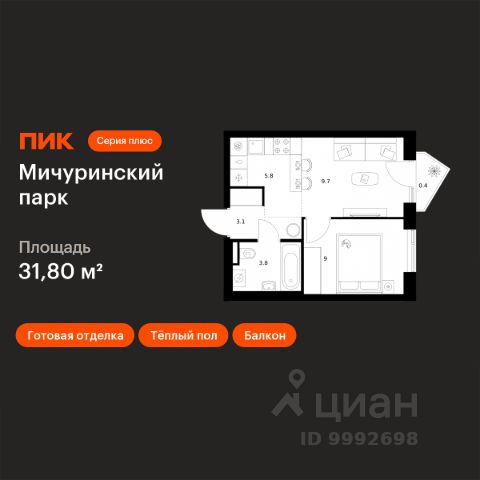 О квартире Продаётся 1-комнатная квартира общей площадью 39.9 кв.м. без отделки. Квартира расположена на 5 этаже корпуса 5.7 в жилом комплексе бизнес-класса "Среда на Лобачевского" в пешей доступности от метро "Аминьевская". О жилом комплексе "Среда на Лобачевского" полностью соответствует критериям современного жилого пространства. Взяв за основу рациональный подход, мы гармонично соединили дизайн, актуальные тренды и функциональность. Продуманный современный экстерьер и функциональные планировки внутри, приватные пространства и разнообразные досуговые зоны для каждого члена семьи — все это "Среда на Лобачевского". Инфраструктура Район отлично развит и наполнен жизнью, здесь уже есть вся необходимая инфраструктура — детские сады, школы, медучреждения, торговые центры, благоустроены парки для прогулок и отдыха, удобен и легкодоступен городской транспорт. Рядом расположены учебные корпуса крупных университетов — МГУ, МГИМО и РАНХиГС. Школы и детские сады в районе занимают высокие позиции в городских рейтингах, поэтому вам не придется беспокоиться о качестве образования детей. Как и об отдыхе: поблизости расположены живописные пруды, реки и парки. Это Парк Олимпийской деревни, Парк имени 50-летия Октября, Мещерский парк и Очаковские пруды. Теперь поставить галочки в еженедельном чек-листе "спорт-прогулки-встречи с друзьями" можно, не покидая любимый район. Особенности Особое внимание в проекте уделяется созданию функциональных пространств не только внутри дома, но и за его пределами. В ландшафтном парке "Среды на Лобачевского" расположены крытые зоны для спокойного времяпровождения, места для активного отдыха и спорта, коворкинг, соседский комьюнити-центр, водные объекты. —Ландшафтный парк во дворе. —Водный сад с зонами отдыха. —Зоны коворкинга. —Дизайнерские гранд-лобби. —Бесключевой доступ. —Подземный паркинг.