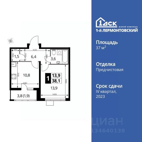 Прямая продажа от застройщика! Жилой Комплекс класса Комфорт Плюс. Продаётся 1-к квартира номер 749 общей площадью 37.9 кв.м. на 5-м этаже 24 этажного здания. Отделка Whitebox. Цена с учётом скидки. Особенности квартиры: - Просторная спальня, в которой можно разместить большую кровать. - Линейная планировка - максимальная функциональность и удобство. - Линейная кухня - функциональность и практичность в одном решении. - Кладовая - дополнительное пространство для хранения. - Лоджия - уютное место для отдыха и тишины. Квартира с предчистовой отделкой (White box). Вам не придется заниматься черновыми и трудоёмкими работы, а чистовую отделку и дизайн - сделайте на свой вкус. Информация о комплексе: Ощущение уютного дома должно начинаться с подъезда. Мы постарались предусмотреть все нюансы, чтобы наши лифты отвечали самым строгим современным требованиям. Двор без машин, закрытое, безопасное, охраняемое место с удобным доступом для вашего авто, более чистый воздух и гарантированное место для стоянки - и это далеко не преимущества наличия подземного паркинга. А наличие кладовых позволит вам поддерживать идеальный порядок и уют в вашей квартире! "1-й Лермонтовский" расположился недалеко от уже сложившегося зеленого окружения - Люберецкого парка и Жулебинского лесопарка, переходящего в природно - исторический парк "Кузьминки". Если вы предпочитаете активный семейный отдых на свежем воздухе - в округе мест для него предостаточно. С востока он граничит со столичным районом Некрасовка. С северной стороны - с развитым современным микрорайоном "Красная Горка". Удачное расположение дарит жильцам возможность передвижения как на своем автомобиле, так и на общественном транспорте. Транспортная доступность: В шаговой доступности ж/д станция "Люберцы-1". 5 минут на автомобиле до станций метро "Некрасовка", "Котельники", "Лермонтовский проспект" Внутренняя инфраструктура: Свободно перемещайтесь по внутренней территории в безбарьерной среде! На территории комплекса созданы все условия как для активного образа жизни, так и для спокойного времяпрепровождения: - игровые площадки для детей разного возраста. - площадки воркаута, спортивные комплексы с зонами для детского и взрослого спорта. - зоны отдыха с пешеходными дорожками и аллеями. Также, к вашим услугам: 4 общеобразовательные школы, 7 детских садов, спортивные и танцевальные, школы, поликлиники, множество магазинов и супер-маркетов, включая Ашан и несколько крупных ТЦ в шаговой доступности.