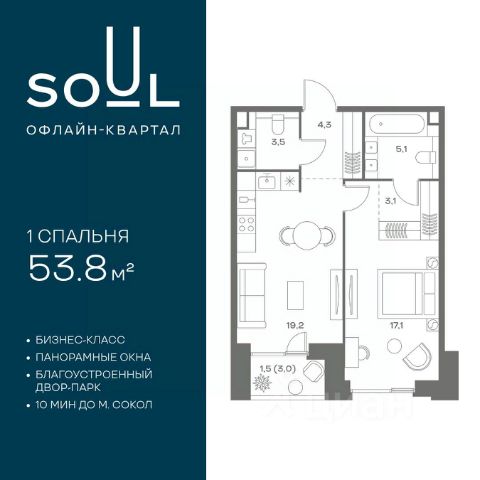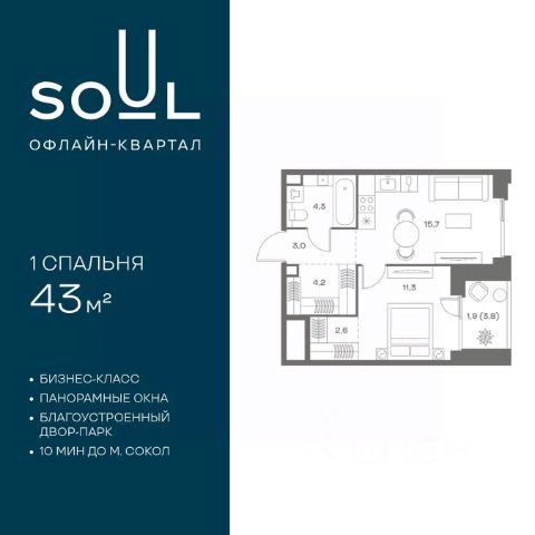Цены указаны с условием 100% оплаты и стандартной ипотеки. Прямая продажа от застройщика! Продается 1-к. квартира номер 268 общей площадью 52 кв.м. на 5-м этаже 8 этажного дома, корпус UNIQUE (премиум-класс). Без отделки. Проект бизнес-класса SOUL от девелопера FORMA. До метро Сокол 10 мин пешком. Архитектура от британского бюро SimpsonHaugh. Благоустройство дворов — Gillespies и GAFA. Территория состоит из культурного парка и приватных дворов. Озеленение в эстетике лесного оазиса. Насыщенное благоустройство: прогулочные тропинки, релакс-зоны, пряный и сенсорный сады, развивающие детские площадки и воркауты. В центре проекта объект культурного наследия — общественное пространство Изофабрика, построенная в 30-х годах по проекту архитектора Георгия Гольца. Здесь будут располагаться мастерские для взрослых и детей, выставочные залы, коворкинги, образовательный центр, рестораны и кафе. Квартиры с панорамными окнами, мастер-спальнями, гардеробными, классическими балконами и лоджиями, видовыми террасами. Высота потолков от 2,9 до 3,5 м. В проекте 2 детских сада на 100 и 200 малышей. Клубная гостиная, фитнес-рум, детская игровая комната, дизайнерские лобби, подземный паркинг и келлеры.
