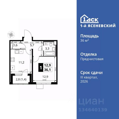 Прямая продажа от застройщика! Жилой Комплекс класса Комфорт Плюс. Продаётся 1-к квартира номер 142 общей площадью 34.3 кв.м. на 5-м этаже 16 этажного здания. Отделка Whitebox. Особенности квартиры: - Квартиры рядом с метро - м. Корниловская 9 мин пешком - 63 га лесопарка за окнами - Школа c it-кластером и бассейном. 2 детских сада - Мастер-зона с гардеробной. Просторное место для отдыха и удобного хранения вещей. - Линейная планировка - максимальная функциональность и удобство. - Гибкая планировка - создайте пространство по своему вкусу. - Можно оборудовать рабочее место - комфорт для работы и учёбы. - Гардеробная - удобство для хранения и организации вещей. - Ниша под шкаф - компактное и удобное место для вещей. Квартира с предчистовой отделкой (White box). Вам не придется заниматься черновыми и трудоёмкими работы, а чистовую отделку и дизайн - сделайте на свой вкус. Информация о комплексе: В жилом комплексе комфорт-плюс класса "1-го Ясеневского" доступны преимущества двух стилей жизни. Ведь в пешей доступности метро, школа с 25-метровым бассейном и IT-кластером и при этом целых 63 га благоустроенного Троицкого лесопарка под окнами, где так приятно дышать свежим воздухом и слушать пение птиц. Собственная закрытая территория "1-го Ясеневского" представляет собой уютный оазис. Здесь и зеленый освещенный бульвар для прогулок, система велодорожек, маленькая городская площадь, кафе, пекарни и кофе поинты. А еще дворы без машин и многоэтажная парковка. Изюминка территории - фруктовые деревья во дворах и городские сады. "1-й Ясеневский" - всего в 1 км от МКАД, на территории новой Москвы. Жилой комплекс, где есть все необходимое для современного человека. Транспортная доступность: До метро "Корниловская" - 12 минут пешком До метро "Тютчевская" - 25 минут пешком До метро "Теплый стан" - 10 минут на транспорте До метро "Ольховая" - 30 минут на общественном транспорте Личный автотранспорт: Выезд на Калужское шоссе - 500 м МКАД - 1 км Внутренняя инфраструктура: ЖК "1-й Ясеневский" можно назвать идеальным местом для жизни семьи с детьми. Здесь буквально за домом находится Троицкий лесопарк - излюбленное место прогулок молодых родителей. А во внутренних дворах под детские площадки выделены специальные зоны. Они оборудованы всем, что нужно для счастливого детства: современными и максимально безопасными качелями, песочницами и лазалками. Оборудование и игровые сценарии на детских площадках спроектированы вместе с командой детских психологов для правильного развития ребенка и для повышения их интереса. Также рядом с домом два детских садика, один из которых уже построен и школа на 1100 мест. Школу по праву можно назвать образцовым учебным заведением. В ней закладываются основы успешного будущего. Здесь есть класс робототехники, IT-кластер, 25-метровый бассейн и прекрасно оборудованные спортзалы.