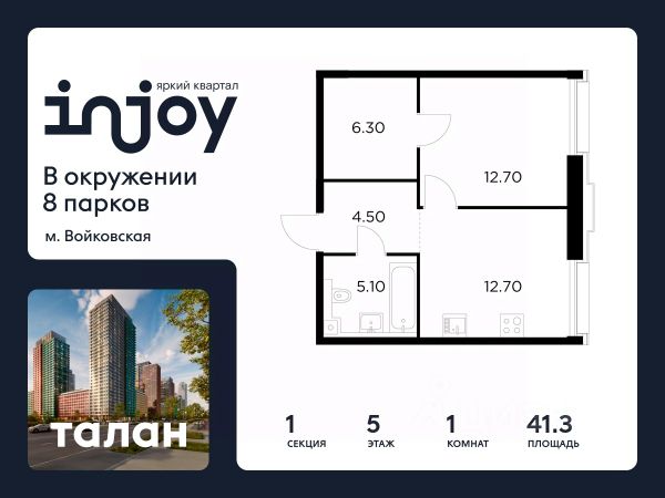 В продаже 1-к квартира площадью 39.5 м2. Функциональная планировка, кухня-гостиная, просторные санузел и гардеробная. Квартира расположена на 5-м этаже 12-этажного дома. Стоимость указана с учетом скидки 12%, экономия составит 2 848 266 рублей! Стоимость квартиры без скидки 23 735 550 рублей. Условия покупки со скидкой 10%: - 100% оплата - Базовая ипотека Условия покупки без скидки: - Семейная ипотека от 3,5% на весь срок - Ипотека 0,11% на первый год - Рассрочка без процентов - Trade-in с проживанием на время строительства дома "Мангазея на Речном" расположена рядом с набережной, парками и территорией Северного речного вокзала. Первая очередь проекта два дома 12 и 24 этажа с приватным двором, ландшафтным благоустройством и инфраструктурой только для резидентов: кинозал, коворкинг, переговорные, зоны отдыха и комнаты для занятия фитнесом. Инфраструктура: - Школа на 1000 мест и детский сад - Дом Wellness со СПА-центром, фитнесом и массажными кабинетами и два бассейна, один из них под открытым небом - Два бассейна, один из них под открытым небом - Прогулочная набережная протяженностью 3,2 км с террасами - Зона воркаута и детские площадки - Ретейл, кафе, рестораны и бутики на первых этажах - Причалы для остановки яхт и небольших катеров Транспортная доступность: - 10 минут пешком до м. Речной вокзал - 15 минут пешком до м. Беломорская - 15 минут на машине до Белорусского вокзала - 17 минут на машине до Садового Кольца В первых корпусах "Мангазеи на Речном" представлены квартиры бизнес-класса с мастер-спальнями, террасами и видами на парк. Эксклюзивные форматы лоты с увеличенной высотой потолков и собственными выходом на благоустроенную территорию.