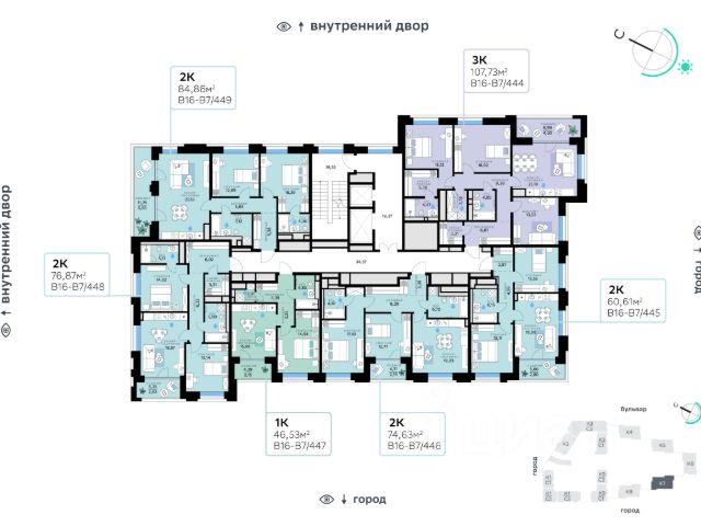 В продаже — однокомнатная квартира, общей площадью 46,53 кв. м. Квартира расположена на пятом этаже десятиэтажного корпуса Балансд в квартале В16 нового района СберСити, который строит Сбер. Архитектуру квартала В16 создало итальянское бюро ARCHEA middle east: каждый дом узнаваем, но вместе они складываются в спокойный, цельный ансамбль. В облицовке сочетаются тёплые оттенки кирпича и металла, за счёт игры фактур фасады выглядят живыми и меняются в разное время дня. Строгая геометрия поддерживает ритм города, а мягкая природная палитра помогает чувствовать себя дома, а не в деловом квартале. Дом возводится по технологии монолитного строительства. Квартиры передаются без отделки, что позволяет будущим владельцам реализовать собственные дизайнерские решения и индивидуальные планировки. В квартирах предустановлена система "умный дом", объединяющая управление квартирой, домом и прилегающей территорией. Можно регулировать климат и освещение голосом или через смартфон. Квартал состоит из девяти домов средней этажности — от 7 до 10 этажей. Корпуса формируют большой внутренний двор площадью два гектара. Во дворе предусмотрены зоны для разных сценариев: просторные площадки для детей, пространства для активного досуга и спорта, тихие места для отдыха и спокойного времени, а также удобные рабочие места под открытым небом. Здесь легко найти своё — для жизни, здоровья и занятий тем, что действительно нравится. В доме предусмотрены: уютное лобби с зоной ожидания, лапомойка, санузел, помещение для хранения колясок и велосипедов, подземный паркинг. СберСити — это новый жилой и деловой район на западе Москвы, в одном из самых экологически чистых и престижных мест столицы. Это первая в России и крупнейшая в мире инновационная городская среда, созданная по международным стандартам зелёного проектирования. Здесь внедряются решения в области энергоснабжения, вакуумного мусороудаления, тестирования зелёных технологий, а в дальнейшем — системы искусственного интеллекта для управления домами и городской инфраструктурой. Строительство проекта началось в 2021 году, заселение первых корпусов — с лета 2024-го. Общая площадь территории — 461 га, из них более 2,5 млн кв. м жилья и около 833 тыс. кв. м офисных пространств. Будет построено 7 школ, 13 детских садов и 2 поликлиники. В СберСити будут жить 65 тыс. человек и работать 70 тыс. Развитием территории занимается АО "Рублёво-Архангельское", входящее в группу Сбер. СберСити — место, где хочется жить, работать и растить детей. Переезжайте в СберСити!