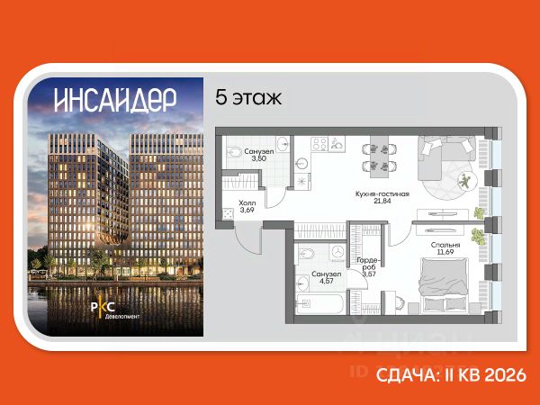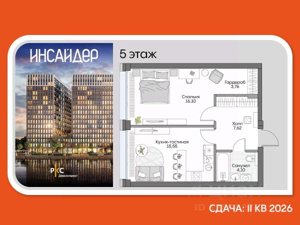 Продается 1-комн. кв-ра площадью 43.80 кв.м на 5 этаже 43 этажного монолитно-кирпичного дома в ЖК "ЗИЛАРТ" от Группа ЛСР. ЗИЛАРТ СПАРК — новый дом бизнес-класса в жилом квартале "ЗИЛАРТ" высотой 150 метров. Он сочетает в себе современную архитектуру, передовые технологии и восхитительные виды на ландшафтный парк "Тюфелева Роща" и бульвар Братьев Весниных. Близкое расположение к музейно-выставочному центру "Коллекция" и концертному залу создает вдохновляющую атмосферу места, где переплетаются жизнь и творчество. ЗИЛАРТ СПАРК расположен в престижном Даниловском районе. В пешей доступности находятся несколько станций метро: "Тульская", "Автозаводская", "Технопарк" и недавно открытая "ЗИЛ" Троицкой линии, с которой можно пересесть на одноименную станцию МЦК, а позже и на станцию "ЗИЛ" Бирюлевской линии (открытие запланировано на 2028 год). В пешей доступности есть вся необходимая инфраструктура: супермаркеты, салоны красоты, уютные кафе и рестораны, спортивные студии, места для досуга, отдыха и развлечений. На благоустроенной набережной Марка Шагала располагается действующий причал "ЗИЛ". Жилой комплекс даст возможность прогуляться по живописной набережной, просторному парку и бульвару. Любители здорового образа жизни и спортсмены оценят современные площадки для спортивных игр и фитнес-центр с бассейном. Молодые родители будут спокойны за настоящее и будущее детей благодаря современной образовательной среде. В "ЗИЛАРТе" расположена одна из самых больших школ России на 2,5 тысячи учеников.