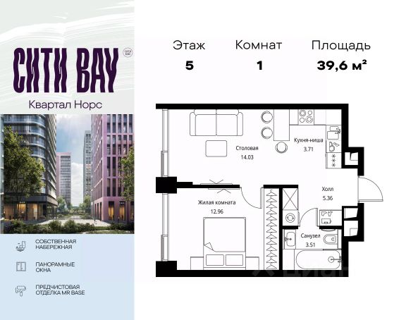 Прямая продажа от застройщика. Продаётся 1-комнатная квартира общей площадью 38.21 м² с предчистовой отделкой в ЖК Сити Бэй, квартале Норс, на 5-м этаже 26 этажного дома. Концепция жилого комплекса Сити Бэй - настоящий город в городе с отлично развитой инфраструктурой и собственной благоустроенной набережной. На территории жилого комплекса расположено пять кварталов - Атлантик, Пасифик, Индиан, Норс, Клиф. Жилой квартал Сити Бэй отличается оригинальной концепцией и выделяется среди других проектов такими характеристиками как: - Архитектура, - Виды из окон, - Природное окружение, вызывая гордость у жителей и восхищение у прохожих. Вся жизнь района Покровское-Стрешнево строится вокруг водных объектов: - Пойма реки Сходни с уникальной экосистемой, - Речка Химка и Химкинское водохранилище, - Москва-река, - Канал имени Москвы. Кругом вода, и местные с удовольствием этим пользуются. А сразу за рекой - центр водного спорта в Строгино с вейк-парком и яхт-Клубами. Помимо воды, здесь очень много зелени: - Рядом Сходненский ковш памятник природы, естественный амфитеатр глубиной 40 метров; - Парк при усадьбе Братцево с фруктовым садом; - Дубовая роща "Маяк", - Алешкинский лес; - Лесопарк Покровское-Стрешнево с пляжами и бобрами. Главные транспортные артерии района: - Волоколамское шоссе, - Таганско-Краснопресненская линия метро и МЦД-2. Всего за 20 минут можно добраться до центра на машине или метро, а МЦД связывает ЖК Сити Бэй с северными, восточными и юго-восточными районами. Компания MR предлагает своим клиентам специальные условия приобретения квартир в рамках программ ипотечного кредитования от банков-партнеров.