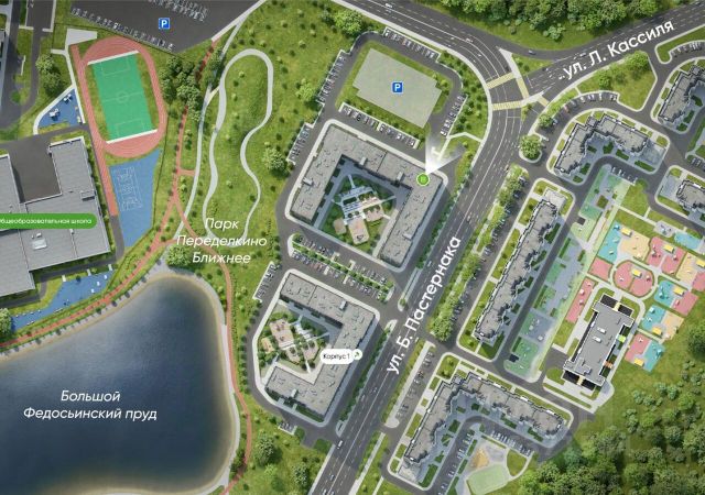 Продается однокомнатная квартира в городе-парке "Переделкино Ближнее". Общая площадь квартиры - 38,5 кв. м, этаж 5 из 17. Срок сдачи - 1 квартал 2028 года. Тип дома - монолитный. Корпус расположен в 13 фазе строительства и состоит из 8 секций с переменной этажностью 12-17 этажей. Все секции без отделки. Около 13 фазы запланировано строительство многоуровневого паркинга на 300 м/мест. 13 фаза имеет уникальное расположение и находится непосредственно на берегу Федосьинского пруда, который является сердцем города-парка "Переделкино Ближнее". Город-парк "Переделкино Ближнее" расположен в 8 км от МКАД по Боровскому шоссе. ТРАНСПОРТНАЯ ДОСТУПНОСТЬ: - 15 минут пешком до станции МЦД-4 "Мичуринец" - 25 минут пешком до станции метро "Рассказовка" Солнцевской линии - 30 минут до центра Москвы - 2026 г. - открытие трассы Солнцево-Бутово-Варшавское шоссе РАЗВИТАЯ СОЦИАЛЬНАЯ ИНФРАСТРУКТУРА: - 7 детских садов, 3 школы - банки, продуктовые магазины, аптеки, фитнес центры, салоны красоты и пр БЛАГОУСТРОЙСТВО: - дворы без машин - игровые зоны и развивающие детские площадки - зоны для созерцательного и медитативного отдыха - зоны для занятий спортом ОСОБЕННОСТИ АРХИТЕКТУРЫ: - высокие потолки от 3,03 м - безбарьерные входные группы - колясочные в каждой входной группе - кладовые помещения расположены на -1 этаже каждой секции - в каждой секции 2 лифта: 1 пассажирский, 1 грузовой - на фасаде предусмотрены корзины для установки кондиционеров АВТОРСКИЙ ДИЗАЙН: Входные группы выполнены по авторскому дизайну, благодаря панорамному остеклению наполнены естественным светом. В каждой входной группе будет располагаться комфортабельная зона ожидания с возможностью зарядить электронные устройства, почтовые ящики, колясочная, акцентные пуфы и столик.