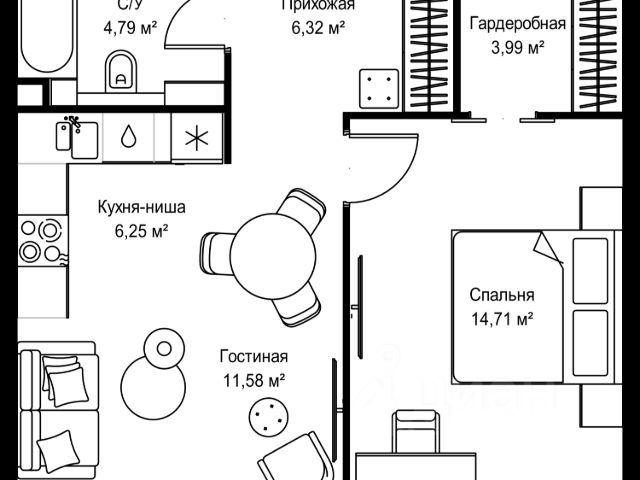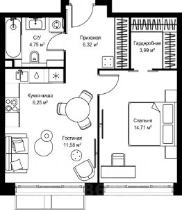 Продаётся 1-комнатная квартира 299, площадью 34,31 м², на 6 этаже в ЖК "Аникеевский" корпус 1.1. Стоимость — от 7328732 руб. Квартира без отделки, планировка односторонняя, окна на улицу.