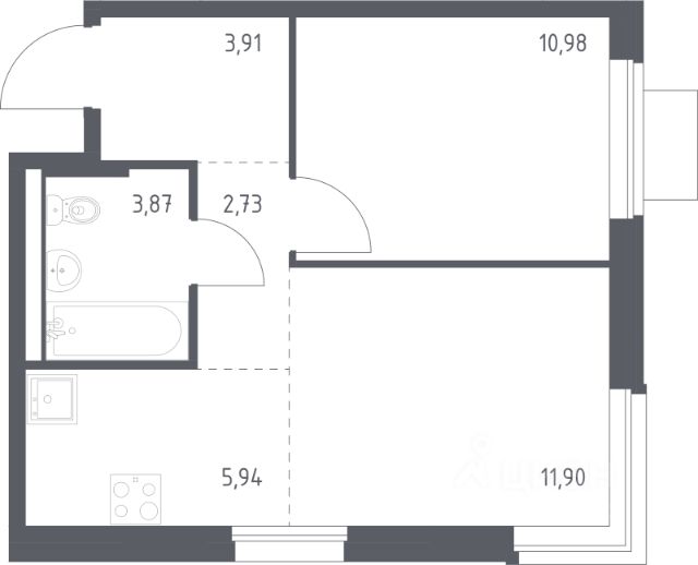 В продаже 1-комнатная квартира в корпусе 10 ЖК 'Квартал Западный'. Квартира располагается на 6 этаже, общая площадь 40.92 м2.