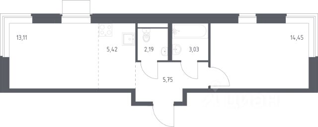 В продаже 1-комнатная квартира в корпусе 9 ЖК 'Квартал Западный'. Квартира располагается на 6 этаже, общая площадь 41.44 м2.