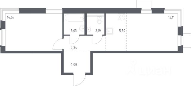 В продаже 1-комнатная квартира в корпусе 9 ЖК 'Квартал Западный'. Квартира располагается на 6 этаже, общая площадь 43.95 м2.