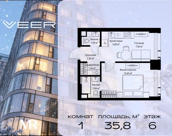 Старт продаж новой очереди! Продаётся 1-комнатная квартира общей площадью 52.89 м² без отделки в ЖК Веер на 6-м этаже 35 этажного дома. Веер.2 — вторая очередь футуристичного квартала бизнес-класса Веер. Это новая экосистема в престижном Западном округе Москвы, поражающая масштабностью внутренней инфраструктуры. ЖК находится всего в 5 минутах от Кутузовского проспекта и в 15 минутах от Сколково. Ансамбль из четырех стеклянных башен с доминантой в 237 метров разработан по принципу современного урбанизма и выражен в лаконичных объемах — параллелепипедах со сглаженными углами, которые придают зданиям утонченный вид. Расположение и транспортная доступность: • Образовательный комплекс в составе топовой школы, состоящий из двух зданий: основное на 1500 школьных и 450 дошкольных мест, отдельное здание детского сада на 300 мест. • Парк "Долина реки Сетунь" площадью более 700 гектаров • Рядом МГУ, МГИМО, РАНХиГС и Академия ФСБ • 15 минут по Кутузовскому проспекту до ужина в центре с видом на Москву-реку • 18 минут пешком до м. "Давыдково" • Открытие новых станций метро в шаговой доступности в будущем Инфраструктура: Двор в Веер.2 — это ассиметричные холмы, каменные "лабиринты", зеленые ковры и хвойные островки с единой живой экосистемой. Здесь есть все: • Павильон умиротворения Место отдыха под навесом в спокойной части двора, окруженное деревьями. • Активная тропа Тактильная дорога из камней разного диаметра для расслабляющих прогулок. • Бизнес-гарден Оборудованное пространство для работы на свежем воздухе со столом и встроенными розетками. • Детская площадка Двухуровневая площадка "Ботаника" с песочницей, переговорной трубой и горкой "Дружба". Компания MR предлагает своим клиентам специальные условия приобретения квартир в рамках программ ипотечного кредитования от банков-партнеров.