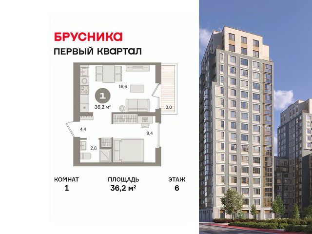 Продажа 1-комнатных квартир на 6 этаже рядом с метро Домодедовская