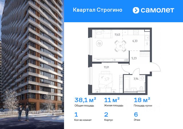 Продажа 1-комнатных квартир на 6 этаже рядом с метро Липовая Роща