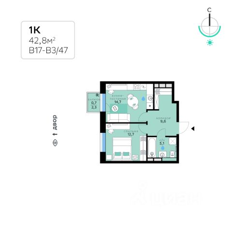 В продаже — однокомнатная квартира, общей площадью 41 кв. м. Квартира расположена на шестом этаже шестиэтажного корпуса класса Балансд в квартале В17 нового района СберСити, который строит Сбер. Квартал В17 — современная интерпретация голландской архитектуры. Каждый корпус имеет индивидуальный облик. Фасады домов класса Балансд облицованы кирпичом и клинкерной плиткой, над первым этажом проходит декоративный пояс из фигурной кладки. Французские балкончики чередуются с широкими окнами, создавая динамичный, но гармоничный ритм. Квартира сдаётся без отделки. Установлены двухкамерные стеклопакеты с алюминиевым профилем и скрытыми створками. Высота потолков — от 2,7 м. В квартирах предустановлена система "умный дом" — комплекс решений, объединяющий квартиру, дом и прилегающую территорию. Жильцы смогут регулировать климат и освещение голосом или со смартфона, установить защита от протечек. Квартал В17 состоит из шести корпусов переменной этажности (от 1 до 10 этажей) и 491 квартиры. Корпуса объединены общей подземной частью, где расположен паркинг на 309 автомобилей, места для мотоциклов и более 400 кладовых помещений. На первом этаже дома — уютное лобби, лапомойка, колясочная и велосипедная комната. Во дворах созданы приватные благоустроенные пространства с ландшафтными композициями, детскими и спортивными площадками, зоной для йоги и маршрутами для прогулок. Рядом расположены детский сад, парк и набережная Москвы-реки. СберСити — это новый жилой и деловой район на западе Москвы, в одном из самых экологически чистых и престижных мест столицы. Это первая в России и крупнейшая в мире инновационная городская среда, созданная по международным стандартам зелёного проектирования. Здесь внедряются решения в области энергоснабжения, вакуумного мусороудаления, тестирования зелёных технологий, а в дальнейшем — системы искусственного интеллекта для управления домами и городской инфраструктурой. Строительство проекта началось в 2021 году, заселение первых корпусов — с лета 2024-го. Общая площадь территории — 461 га, из них более 2,5 млн кв. м жилья и около 833 тыс. кв. м офисных пространств. Будет построено 7 школ, 13 детских садов и 2 поликлиники. В СберСити будут жить 65 тыс. человек и работать 70 тыс. Развитием территории занимается АО "Рублёво-Архангельское", входящее в группу Сбер. СберСити — место, где хочется жить, работать и растить детей. Переезжайте в СберСити!