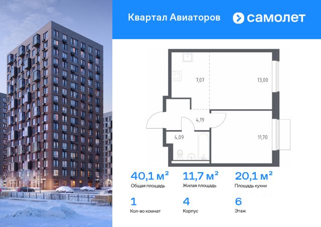 Строим кварталы для жизни с заботой о будущем. Предлагается 1-комнатная квартира комфорт-класса 40,05 кв.м в корпусе 4 на 6 этаже, в ЖК "Квартал Авиаторов" Квартира с чистовой отделкой. Доступность дополнительных опций уточняйте у застройщика. Приобрести квартиру возможно по специальным акциям от застройщика, с текущими условиями акций можно ознакомиться в блоке "Акций". Цена динамическая и может отличаться, уточняйте актуальность у застройщика. "Квартал Авиаторов" — жилой комплекс комфорт-класса, расположенный в 2 км от железнодорожной станции Балашиха (5 минут на автомобиле, 30 минут пешком). Поблизости — Горенский лесопарк и заповедник "Лосиный остров". В проекте предусмотрены закрытые дворы с детскими и спортивными площадками, безбарьерная среда.