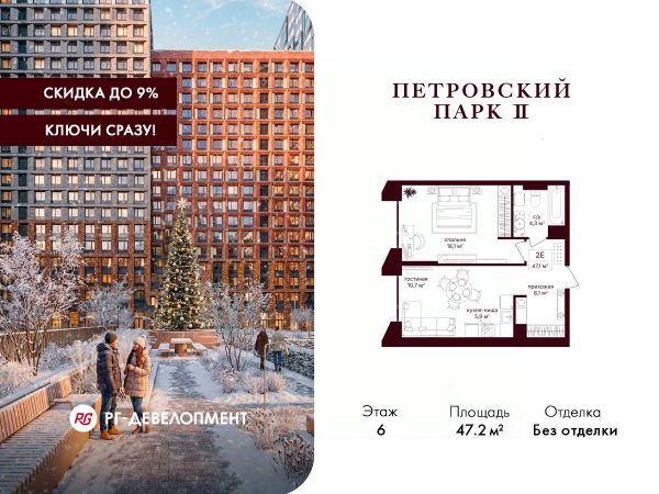 Рассрочка 0% + скидка 2%. Первый платёж 30%, второй - не позднее 31.12.2026 г. Продаётся 1-комнатная квартира 43.1 кв.м. в ЖК "Петровский парк II" на 6-м этаже 21 этажного дома. ЖК "Петровский парк II" — жилой комплекс в Савёловском районе, где город ощущается иначе. Здесь история и масштаб Москвы не давят, а задают фон для спокойной, уверенной жизни рядом с центром. Это место, где статус читается не в громких формулировках, а в окружении, архитектуре и ощущении пространства. Коротко о важном: • Район с глубоким историческим контекстом и парковым окружением; • 5 минут пешком до метро "Динамо", рядом с деловой и культурной жизнью города; • Редкое сочетание: энергия мегаполиса и тишина зелёных аллей; • Архитектура от бюро Syntaxis с пластикой форм и индивидуальным характером фасадов; • Панорамные виды на город и зелёные массивы Петровского и Тимирязевского парков; • Закрытый двор без машин, вдохновлённый эстетикой дворцовых садов; • Просторные гранд-лобби с высокими потолками и выверенной, респектабельной эстетикой; • Частный детский сад во дворе; • Подземный паркинг и кладовые; • РГ-Девелопмент - ТОП-20 крупнейших застройщиков Москвы. Расположение комплекса формирует особое ощущение свободы выбора. Утром - прогулка по тенистым аллеям Петровского парка, днём - работа и встречи в деловых кластерах поблизости, вечером - культурные события, рестораны и городские пространства в нескольких минутах пути. Здесь расстояния измеряются не километрами, а шагами от дома. Архитектура "Петровского парка II" задумана как современная доминанта района и одновременно как уважительный диалог с исторической средой. Асимметричные объёмы, волнообразные элементы и игра света и тени создают выразительный, но сдержанный силуэт. Архитектура наполнена воздухом и визуальным ритмом, оставаясь спокойной и уверенной. Общественные пространства продолжают эту логику. Два гранд-лобби с высокими потолками и благородной цветовой палитрой воспринимаются как пространства, где хочется замедлиться: встретить гостей, перевести дыхание после дня или просто почувствовать уровень среды, в которой вы живёте. Внутренний двор комплекса - это отдельный мир, закрытый от машин и городского шума. Ландшафтный дизайн отсылает к регулярным дворцовым садам: геометрия аллей, зелёные "кабинеты", цветники и камерные зоны отдыха создают разные сценарии для повседневной жизни. Здесь органично соседствуют детские игровые пространства, плейхаб, спортивные зоны и тихие места для отдыха. На территории комплекса расположены магазины, кафе и рестораны, а также частный детский сад, встроенный в общую структуру двора. Подземный паркинг и кладовые поддерживают ощущение порядка и цельности пространства.