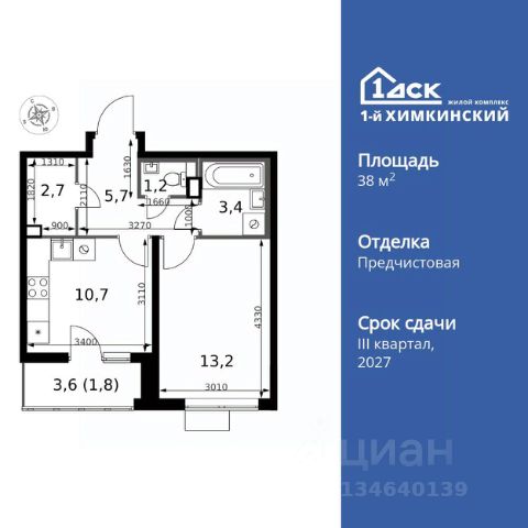 Прямая продажа от застройщика! Жилой Комплекс класса Комфорт. Продаётся 1-к квартира номер 532 общей площадью 38.7 кв.м. на 6-м этаже 13 этажного здания. Отделка Whitebox. Цена с учётом скидки. Особенности квартиры: - Линейная планировка - максимальная функциональность и удобство. - Раздельный санузел - больше удобства для всех членов семьи. - Гардеробная - удобство для хранения и организации вещей. - Лоджия - уютное место для отдыха и тишины. Квартира с предчистовой отделкой (White box). Вам не придется заниматься черновыми и трудоёмкими работы, а чистовую отделку и дизайн - сделайте на свой вкус. Информация о комплексе: Квартал класса комфорт плюс, где современное городское пространство граничит с удивительной природой вокруг. 1-й Химкинский расположен на территории в 102 га и органично вписан в природное окружение Химкинского леса и канала им. Москвы. В проекте предусмотрена богатая коммерческая инфраструктура с собственным торговым центром, общеобразовательные учреждения и социальные объекты. Изюминкой жилого комплекса будут спортивно-оздоровительный комплекс с термами и SPA и семейный парк развлечений. Транспортная доступность: ЖК "1-й Химкинский" дает возможность выбрать любой способ передвижения как до города, так и до самых разных объектов, которые могут представлять интерес для его жителей. Не важно, какой способ передвижения вы предпочитаете, успевать всегда и везде можно вне зависимости от выбора транспорта. - 8 мин. пешком (800 м) до остановки "Золотая Арка" -10 мин пешком (1 км) до остановки "Поворот на Ивакино" Внутренняя инфраструктура: - Безопасность: закрытые дворы без машин, безбарьерная среда и сквозные подъезды, камеры на детских площадках с возможностью трансляции на смартфоне - Идеальный отдых в кругу семьи: семейный парк развлечений на территории, торговый центр (2-х этажный) общей площадью более 8 тыс. кв. м с фудкортом - Образование: 3 детских сада и современная муниципальная школа на 2450 мест - Спортивная среда: закольцованный веломаршрут с навигацией, спортивный комплекс с термами, закрытый тренажерный зал и зоны ворк-аута - Социальные объекты: поликлиника со станцией скорой помощи, пожарное депо - Подземный паркинг и кладовые помещения на -1 этаже, станция техобслуживания и автомойка на территории