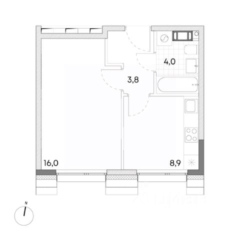 Продаётся 1-комнатная квартира в сданном доме (Парковый бульвар, 3к2), срок сдачи: IV-кв. 2023, общей площадью 41.2 кв.м., на 6 этаже.