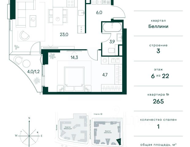 Продаётся 1-комнатная квартира 41.1 м². В жилом районе Алиа на 6-м этаже 30-этажного дома. Жилой район Алиа — это дома бизнес-класса у слияния Москвы-реки и Сходни. Алиа находится в Покровском-Стрешневе, экологически чистом районе на престижном северо-западе столицы. Район возводится на бывшей территории Тушинского аэрополя, где никогда не было промышленного производства. Алиа — это район разностороннего развития, спроектированный по принципу WORK.LIVE.PLAY.LEARN. Это "15-минутный город", где вся необходимая для комфортной жизни инфраструктура — на расстоянии приятной прогулки. У района удобное расположение: отсюда меньше 10 минут пешком до станций метро "Спартак" и "Тушинская" и всего полчаса на автомобиле до центра города или аэропорта Шереметьево. Архитектурную концепцию Алиа разработало бюро SOM (Skidmore, Owings & Merrill), авторы знаменитой "Бурдж-Халифа". В Алиа больше 140 планировочных решений, среди которых — редкие для Москвы форматы: квартиры с окном в ванной, пентхаус, сити-юниты и таунхаусы. Почти половина территории района отдана под благоустройство. В Алиа три парка: Линейный парк с кафе и магазинами, Центральный парк с амфитеатром, сухим фонтаном и большим плейхабом для детей всех возрастов и Прибрежный парк на собственной набережной, одной из самых длинных в Москве. В каждом урбан-блоке — закрытый внутренний двор с гипоаллергенными растениями и детской площадкой. В лобби каждого жилого корпуса в Алиа оборудована зона ожидания, колясочная, гостевой санузел и лапомойка для домашних животных. За стойкой ресепшена резидентов и их гостей встречает консьерж. Центральное лобби урбан-блока — это стильное общественное пространство с коворкингом, лаундж-зоной и кофе-пойнтом. Это "вторая гостиная" жителей урбан-блока и одно из мест, где формируется комьюнити Алиа. Два ключевых объекта инфраструктуры в Алиа — это спорткомплекс "Чкалов Арена", где представлены 25 видов спорта, и самый большой в стране бизнес-парк класса A, благодаря которому району обеспечено быстрое развитие.