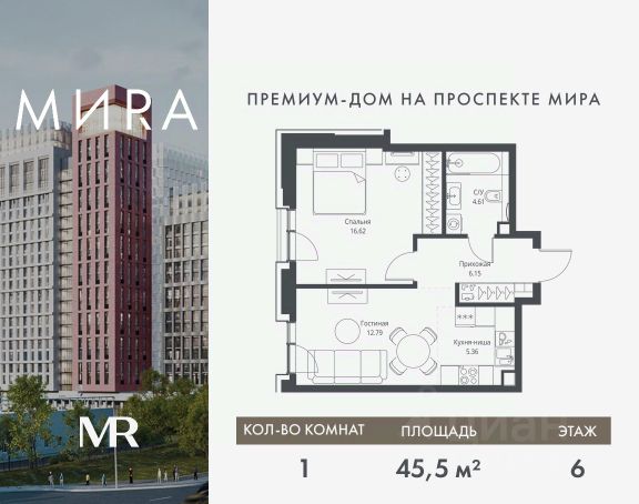 Прямая продажа от застройщика. Продаётся 1-комнатная квартира общей площадью 36.06 м² без отделки в доме премиум-класса МИRА на 6-м этаже 24 этажного дома. Квартира расположена в корпусе 3. Дом премиум-класса МИRA это: • Спокойный район с богатой историей и сложившейся инфраструктурой • Авторская архитектура на стыке классики и современности • Вход в парк прямо из жилого комплекса • Панорамные виды на Яузу, парки, ВДНХ и скульптуру "Рабочий и колхозница" • Удобные сервисы и безопасность для каждого резидента Расположение: Жилой квартал расположен в Алексеевском районе на северо-востоке Москвы, на второй линии домов, таким образом вы сможете дистанцироваться от шума и суеты проспекта Мира, но при этом будете жить недалеко от этой важной городской магистрали. Прямо у дома: • Парк Акведук • Река Яуза • Памятник "Рабочий и колхозница" Пешком: • 16 мин м. ВДНХ На автомобиле: • 12 мин ТТК • 15 мин Садовое кольцо • 12 мин Национальный парк "Лосиный остров" Благоустройство: Концепция благоустройства от бюро "ДРУЖБА" разработана в стиле "Лесная тропа". В уютном дворе расположились словно затерянные в лесу, площадки для отдыха. Они разделяются островками с травами, кустарниками, крупными камнями и деревьями, между которыми проходят узкие песчаные тропинки с деликатной подсветкой по вечерам. Центральной точкой притяжения для жителей станет главная площадь с фонтаном, которая открывается сразу из двух входных групп. Внутренний двор МИRA: • Детская площадка с зонами для игр малышей до трех лет и детей более старшего возраста • Спортивная площадка с профессиональным оборудованием для тренировок • Декоративные перголы • Воздушный арт-объект с подсветкой, похожий на облако • Чайный домик, где в отдельном отапливаемом павильоне можно в любое время года попить кофе с соседями или устроить камерное семейное чаепитие • Зоны для работы и отдыха с гамаком под навесом, скамейками и креслами Инфраструктура и окружение: В Алексеевском районе есть огромные благоустроенные парки, магазины, гимназии с высоким рейтингом и филиалы ВУЗов, частные и государственные детские сады, модные кофейни и фитнес-центры. В квартале МИRА предусмотрены: • 2 ресторана с видом на парк Акведук • 3 кафе • фитнес-студия • подземный паркинг на 330 машино-мест Компания MR предлагает своим клиентам специальные условия приобретения квартир в рамках программ ипотечного кредитования от банков-партнеров.