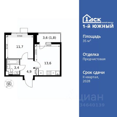 Прямая продажа от застройщика! Жилой Комплекс класса Комфорт Плюс. Продаётся 1-к квартира номер 51 общей площадью 34 кв.м. на 6-м этаже 24 этажного здания. Предчистовая отделка. Особенности квартиры: - МЦД-5 в пешей доступности - Квартал с собственной набережной - Свои 2 детских сада и школа - Организуем показ в удобное для вас время! - Линейная планировка - максимальная функциональность и удобство. - Гардеробная - удобство для хранения и организации вещей. - Ниша под шкаф - компактное и удобное место для вещей. - Лоджия - уютное место для отдыха и тишины. Квартира с предчистовой отделкой. Вам не придется заниматься черновыми и трудоёмкими работы, а чистовую отделку и дизайн - сделайте на свой вкус. Информация о комплексе: ЖК "1-й Донской" в 7 км от МКАД: гармония городского комфорта и природы. Квартиры на 2-3 стороны света, форма секций и разная этажность создают динамичную архитектуру. Тёплая палитра фасадов и подсветка подчеркивают образ. Рядом - Ермолинский парк, Видновский лесопарк и Жуковский парк. Природа воздействует на все уровни восприятия: от видов до звуков и ароматов. Идеальный баланс для жизни в гармонии с окружающей средой. Транспортная доступность: Комплекс удобно расположен в 7 км от МКАД по трассе М-4 Дон (через Видное). Расстояние до Каширского шоссе составляет 12 км. Добраться до метро и центра Москвы позволяет развитая сеть маршрутов общественного наземного транспорта. Действующая ж/д станция Калинина Павелецкого направления в 15-17 минутах ходьбы (МЦД-5 в 2025-2026 гг). Внутренняя инфраструктура: "1-й Донской": продуманная среда в развивающемся районе. На территории - муниципальные школа и 2 детских сада, поликлиника, торговый центр с площадью для мероприятий. Сеть пешеходных маршрутов ведёт к магазинам и кафе, отделённым от дорог зелёными фито-стенами. Сквозные подъезды с панорамным остеклением и входами с улицы и двора наполнены светом. Всё для комфортной жизни в шаговой доступности, от повседневных нужд до общественных пространств. Квартира с предчистовой отделкой - ваш дизайн без черновых работ