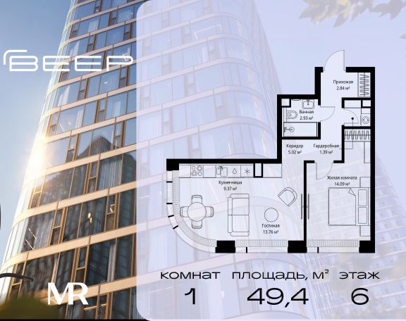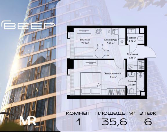 Старт продаж новой очереди! Продаётся 1-комнатная квартира общей площадью 38.81 м² без отделки в ЖК Веер на 6-м этаже 70 этажного дома. Веер.2 — вторая очередь футуристичного квартала бизнес-класса Веер. Это новая экосистема в престижном Западном округе Москвы, поражающая масштабностью внутренней инфраструктуры. ЖК находится всего в 5 минутах от Кутузовского проспекта и в 15 минутах от Сколково. Ансамбль из четырех стеклянных башен с доминантой в 237 метров разработан по принципу современного урбанизма и выражен в лаконичных объемах — параллелепипедах со сглаженными углами, которые придают зданиям утонченный вид. Расположение и транспортная доступность: • Образовательный комплекс в составе топовой школы, состоящий из двух зданий: основное на 1500 школьных и 450 дошкольных мест, отдельное здание детского сада на 300 мест. • Парк "Долина реки Сетунь" площадью более 700 гектаров • Рядом МГУ, МГИМО, РАНХиГС и Академия ФСБ • 15 минут по Кутузовскому проспекту до ужина в центре с видом на Москву-реку • 18 минут пешком до м. "Давыдково" • Открытие новых станций метро в шаговой доступности в будущем Инфраструктура: Двор в Веер.2 — это ассиметричные холмы, каменные "лабиринты", зеленые ковры и хвойные островки с единой живой экосистемой. Здесь есть все: • Павильон умиротворения Место отдыха под навесом в спокойной части двора, окруженное деревьями. • Активная тропа Тактильная дорога из камней разного диаметра для расслабляющих прогулок. • Бизнес-гарден Оборудованное пространство для работы на свежем воздухе со столом и встроенными розетками. • Детская площадка Двухуровневая площадка "Ботаника" с песочницей, переговорной трубой и горкой "Дружба". Компания MR предлагает своим клиентам специальные условия приобретения квартир в рамках программ ипотечного кредитования от банков-партнеров.