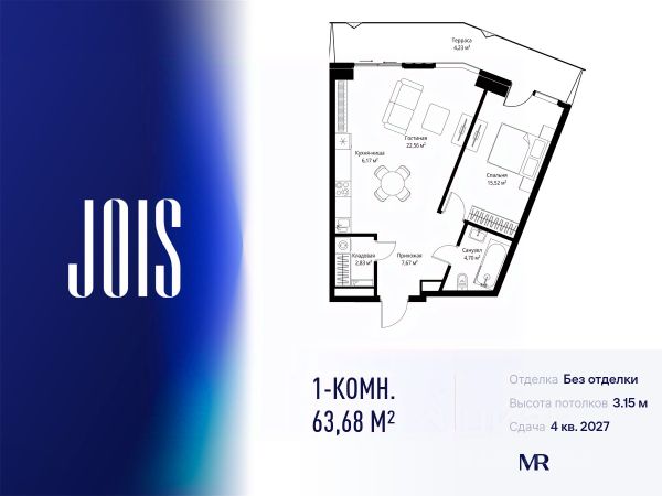 10 минут от Москва-Сити В продаже квартира площадью 49.51 м² без отделки на 6 этаже 46 этажного дома. Квартира расположена в корпусе Leo. JOIS это премиальный жилой комплекс от девелопера MR в районе Хорошёво-Мнёвники. Он включает несколько эффектных небоскрёбов высотой 47-56 этажей, эксклюзивные форматы квартир с панорамным остеклением, подземный двухуровневый паркинг на 239 м/м, собственную приватную инфраструктуру, закрытый ландшафтный парк 2,3 Га с функциональным зонированием и охраняемой территорией. Над проектом работали лучшие команды международных агентств с многолетним опытом: Genpro, S&P, iLight International и другие. Расположение Пешком: - 5 мин. ст. МЦК "Хорошёво"; - 15 мин. ст. м. "Народное ополчение"; - 10 мин. ст. метро "Звенигородская" с 2027 года; - 20 мин. причал "Карамышевский". На автомобиле: - 3 мин. до Звенигородского шоссе; - 5 мин. до ТТК: - 8 мин. до Серебряного бора и Строгинского затона - 10 мин. до ММДЦ "Москва-Сити"; - 40 мин. до аэропорта "Шереметьево"; Благоустройство - собственный ландшафтный парк 2,3 Га; - парк скульптур от Cosmoscow; - консьерж-сервис 24/7; - сервисный лифт и вход; - игровые и спортивные площадки; - коворкинг с библиотекой; - лаунж-зона с камином; - игровые комнаты для детей и клуб для подростков с оборудованием для видеоигр; - спортивная студия для индивидуальных тренировок; - гостиная с мини-кухней; - зоны для выгула собак; - подогрев пешеходных дорожек в зимний период; - автополив зелёных насаждений; - премиальные рестораны, кафе, химчистки, аптеки и супермаркеты. Окружение - 4 парка: Покровское-Стрешнево, Филёвский парк, Серебряный бор и Берёзовая роща; - 15 общеобразовательных заведений, в том числе две школы из самых лучших в Москве: государственная школа "Интеграл" и частная "Хорошкола"; - спортивное сооружение "ВЭБ Арена", домашний стадион ФК ЦСКА; - крупнейший в Европе торгово-развлекательный центр "Авиапарк".