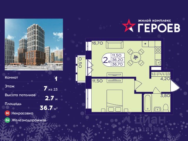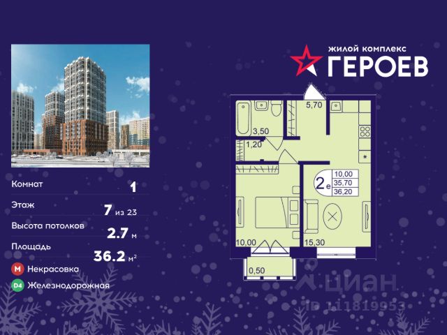 Продаётся 1-комнатная квартира 36.70 кв. м. в жилом комплексе "Героев" в Балашихе, Железнодорожный. Квартира расположена на 7 этаже 610 корпуса. В наличии квартиры с отделкой. Всего 40 минут до центра Москвы. При покупке квартиры в сданном доме ключи выдаются сразу! Жилой квартал "Героев" - это уютный проект для семей с детьми. В квартале созданы все условия для досуга всех возрастов: игровые и спортивные площадки, места для отдыха и прогулочные зоны. За 15 минут можно дойти от дома до Ольгинского лесопарка, популярного места для отдыха на свежем воздухе. На территории жилого комплекса уже открыт детский сад на 250 мест и началось строительство еще одного - для 220 малышей, а также школы для 1320 учеников. Рядом работают магазины, кафе, супермаркеты, пункты выдачи. Преимущества: • В уютных светлых квартирах с просторными кухнями-гостиными удобно встречать гостей и проводить время наедине друг с другом. • Благодаря увеличенному остеклению в комнатах много света. • Квартиры продаются с отделкой, можно заселяться сразу после получения ключей.