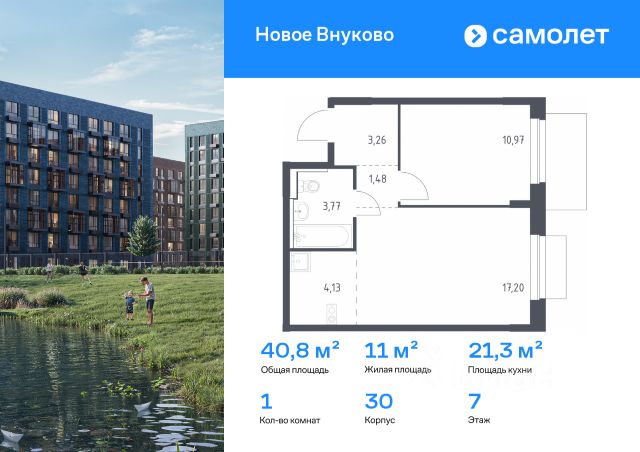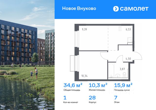 Строим кварталы для жизни с заботой о будущем. Предлагается 1-комнатная квартира комфорт-класса 38,79 кв.м в корпусе 32 на 7 этаже, в ЖК "Новое Внуково" Квартира без отделки. Доступность опции "отделка" и возможность комплектации мебелью и декором уточняйте у застройщика. Приобрести квартиру возможно по специальным акциям от застройщика, с текущими условиями акций можно ознакомиться в блоке "Акций". Цена динамическая и может отличаться, уточняйте актуальность у застройщика. "Новое Внуково" — это жилой комплекс в Новой Москве, у подножия берега реки Незнайка. Поблизости — живописные места для прогулок: народный парк "Ручеек", усадьба Старо-Никольское, Валуевский и Ульяновский лесопарки. Часть домов сдана и внутри района уже открыт детсад с бассейном, а в ближайшее время откроются еще 3 детсада, 2 школы и поликлиника. На территории проекта будет построен первый в России Центр Российской Федерации Баскетбола, где будут площадки с трибунами, тренажерный зал, кафе и конференц-зал. Дворы-парки закрыты от машин и посторонних. На территории — прогулочный маршрут вдоль реки Незнайка и набережная с шезлонгами и качелями для отдыха. Также здесь появится плейхаб "Незнайка на Луне", площадь для мероприятий с сухим фонтаном, летним кинотеатром и кафе. В жилом комплексе — монолитные дома высотой от 6 до 14 этажей. Фасады облицованы кирпичом природных оттенков.