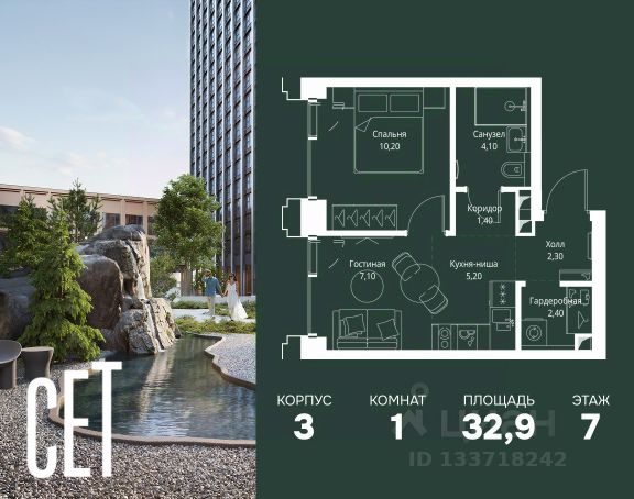 Прямая продажа от застройщика. Продаётся 1-комнатная квартира общей площадью 46.80 м² без отделки в ЖК Веер на 7-м этаже 59 этажного дома. Жилой комплекс бизнес-класса Веер от компании MR — это футуристичный мультиквартал, расположенный в престижной локации на западе Москвы. Благодаря переменной высоте башен — двух 22-этажных, 46-этажной и двух 59-этажных — возникает динамичность в силуэте комплекса, а его яркий образ вносит разноплановость в архитектурный пейзаж района. Расположение и транспортная доступность: • Веер удобно расположен в непосредственной близости от Кутузовского проспекта, обеспечивая быстрый доступ к центральным районам Москвы • Комплекс находится непосредственно напротив самого большого природного заказника в Москве - парка "Долина реки Сетунь", а за семь минут можно доехать до памятника садово-паркового искусства, Троекуровского леса. • Всего в 15 минутах - центр города, самая престижная бизнес-школа управления России "Сколково", дом творчества "Переделкино". Инфраструктура: Разнообразить свой день резиденты Веер смогут также проводя больше времени на свежем воздухе. Двор разделен на 4 зоны разных эмоций и действий, которые пересечены и соединены веерными прогулочными маршрутами: • Спортивная площадка устроена в глубине "Кленовой рощи" • В "Чайном домике" будет создан навес с утеплением для отдыха в любую погоду • Площадки для детей воплотятся в "Волшебный лес" с цветами, зеркалами и световым дизайном • "Центральная площадь" устроена у водного оазиса живописного пруда. Компания MR предлагает своим клиентам специальные условия приобретения квартир в рамках программ ипотечного кредитования от банков-партнеров.