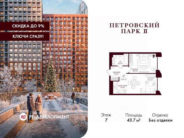 Дом сдан. Ключи в день покупки! В продаже 1-комнатная квартира площадью 37.60 м² с предчистовой отделкой на 7 этаже 43 этажного дома в корпусе Сильвер. ЖК Симфония 34 - концептуально новый жилой комплекс премиум-класса с подземной парковкой, состоит из четырех башен высотой 36 - 54 этажа. Квартиры сдаются с базовой (предчистовой) отделкой MR BASE или дизайнерской чистовой отделкой MR READY. Высота потолков 3 - 6 метров, окна высотой до 2,6 м. Более 100 кладовых в подземной части ЖК и более 500 на этажах. Безопасность - Система контроля входа на территорию комплекса, биометрия - Система автоматического водяного пожаротушения и противопожарного водопровода, система пожарной вентиляции - Доступ на парковку при помощи системы распознавания автомобильных номеров, карточка для контроля доступа резидентов - Система видеонаблюдения - Круглосуточная связь через приложение, телефон, голосовые сообщения с охраной, консьержем, call-центр. Расположение Пешком - 6 минут до метро "Дмитровская" - 15 минут до Тимирязевского парка На машине - 5 минут до Савеловского вокзала и Аэроэкспресса в Шереметьево - 10 минут до Москва-Сити и Садового кольца Благоустройство - 70% территории отведены под зеленые насаждения и ландшафтный дизайн - Приватный Японский сад - Детские площадки с зонированием по возрасту - Clubhouse для резидентов - Wellness & SPA - Зона для пикника, зона с гамаками - Центральное лобби, ресторан, коммерческие помещения - Дополнительный вход/выход на территорию комплекса Окружение - В 10 минутах от Symphony 34 находится дизайн-завод Flacon, где регулярно проходят культурно-образовательные и развлекательные мероприятия - Тимирязевский парк расположен в 850 м. Площадь парка 232 га - Рядом расположен парк "Дубки", площадью 16,5 га. - В 15 минутах расположен Хлебозавод 9. Здесь находятся шоурумы брендов, кафе разных кухонь мира, образовательные проекты и площадки для мероприятий Компания MR предлагает своим клиентам специальные условия приобретения квартир в рамках программ ипотечного кредитования от банков-партнеров.