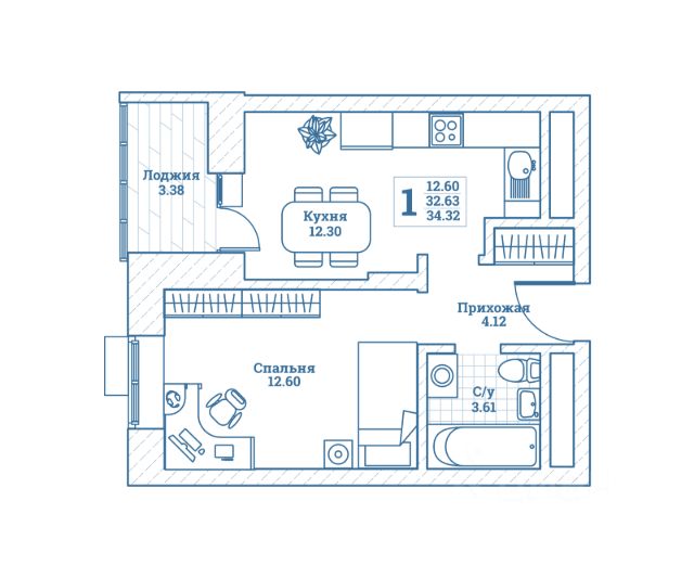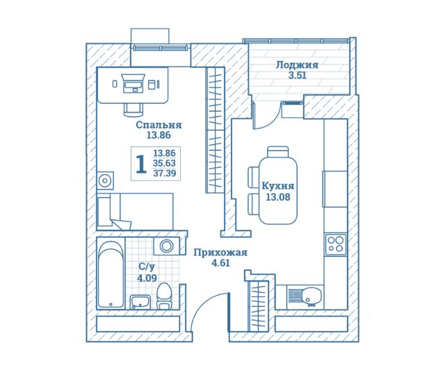 Общая площадь квартиры 37.6 метров. Одна изолированная комната (19 метров) из комнаты выход на балкон 3 метра, 9.3 метра куxня, совмещенный санузел 3 метра. Окна выходят во двор на красивый лес. Дом оборудован пассажирским и грузовым лифтом. Просторный тамбур. Хорошие соседи.