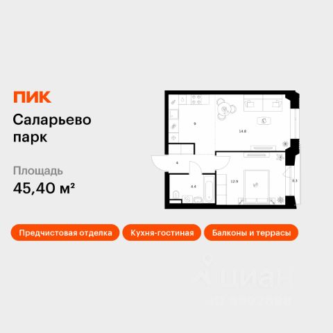 Продаётся 1-комн. квартира площадью 36,5 кв.м на 7 этаже 16 этажного дома (Корпус 57.4, Секция 4) проекта ПИК Саларьево парк. Светлый просторный подъезд на уровне земли, функциональная планировка, большие окна, предчистовая отделка. Жилой район "Саларьево парк" расположен в Новой Москве, в четырёх километрах от МКАД по Киевскому шоссе. Две станции метро: "Саларьево" и "Филатов луг", — находятся в пешей доступности от проекта. Дойти до них можно за 510 минут. В квартале уже создана качественная среда, где есть абсолютно всё для полноценной жизни, работы и отдыха. Благодаря удобному расположению проекта всё важное будет рядом: детские сады, школы, кафе и рестораны, шопинг в торговых центрах, фитнес и даже аэропорт. Все корпуса в квартале гармонично сочетаются, образуя единую городскую среду. Между собой их объединяет невысокая этажность и натуральная цветовая гамма. Здесь приятно гулять и проводить время на улице всей семьёй. В "Саларьево парке" создана уникальная образовательная среда, включающая в себя шесть школ, рассчитанных на 6 250 учеников. Две из них уже открыты, их посещает 2 300 детей. Также на территории "Саларьево парка" находится 12 детских садов, один из которых с бассейном. Сейчас уже открыты 7 садов. В "Саларьево парке" открыта уникальная игровая площадка — PlayHub "Оригами". Здесь есть ручей, горка-труба и рельефные холмы. Взрослые смогут отдохнуть в уютном кафе, пока дети играют. Также на территории проекта есть SportHub — большая спортивная зона, разделённая по интересам и возрастам. Здесь можно заниматься разными видами спорта: футболом, баскетболом, волейболом и стритболом. Зимой центральную часть площадки превращают в каток. Во дворах-парках жилого квартала есть места для отдыха, детские и спортивные площадки. На первых этажах домов расположены магазины, кафе и полезные сервисы. Также вблизи проекта есть несколько масштабных торговых центров. До ТЦ "Саларис" пять минут пешком, до "Рио", Metro Cash & Carry и "Леруа Мерлен" — пять минут на автомобиле. Артикул 1018585 (Застройщик ООО "Специализированный Застройщик "Тирон")