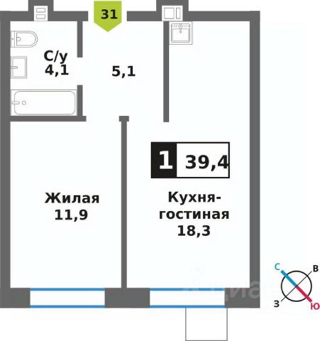 • ✅ Минимальная площадь: 31,1 м²